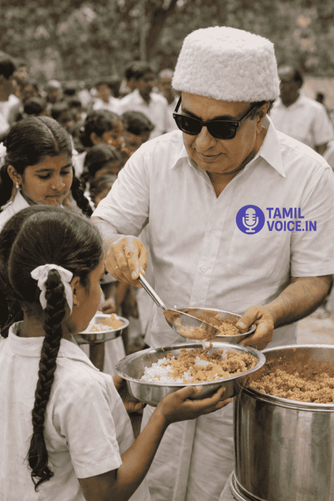 எம்ஜியாரின் கனவு திட்டமான “சத்துணவு திட்டத்தை” 1982 ல் தொடங்கி வைத்தார். இத்திட்டம் காமராஜரின் “மதிய உணவுத் திட்டம்” என்று சிலர் இன்றும் வாதிடுவர். அது உண்மைதான். ஆனால் முதன் முதலில் மதிய உணவுத் திட்டத்தை கொண்டு வந்தவர் நீதிக்கட்சித் தலைவர் சர்.பிட்டி.தியாகராயர் அவர்கள். 1920 இல் “Midday meals scheme” என்ற பெயரில் சென்னை ஆயிரம் விளக்கு பள்ளியில் இத்திட்டம் அமல்படுத்தப்பட்டது. திட்டம் படிப்படியாக எல்லா மாநகராட்சி பள்ளிகளிலும் விரிவுபடுத்தப்பட்டது. 1925 இல் போதிய நிதி இல்லை என்ற காரணத்தால் பிரிட்டிஷாரால் இத்திட்டம் நிறுத்தப்பட்டது. ஆனால் இத்திட்டம் நீதி கட்சியின் தொடர் முயற்சியால் மீண்டும் தொடங்கப்பட்டது. இத்திட்டத்தின் மறுபடிவமே 1956 இல் காமராஜர் கொண்டு வந்த மதிய உணவுத் திட்டம். அதன் நீட்சிதான் எம்ஜியாரின் சத்துணவுத் திட்டம். இத்திட்டத்தால் தமிழ்நாட்டில் 60 லட்சத்திற்கும் அதிகமான மாணவர்கள் பயன்பட்டனர். இதன் மூலம் ஏற்படும் நிதிச் சுமையை போக்க கலைத்துறையினரிடம் நன்கொடை கேட்டார் முதல்வர் எம்ஜிஆர். அப்போது ஜெயலலிதா அவர்கள் 40 ஆயிரம் ரூபாய் நன்கொடை அளித்தார். இத்திட்டத்தை மக்களிடம் கொண்டு சேர்க்க முடிவெடுத்தார் எம்ஜிஆர். இதை பிரபலப்படுத்த சரியான நபர் செல்வி.ஜெயலலிதா தான் என்று எம்ஜிஆர் நம்பினார்.